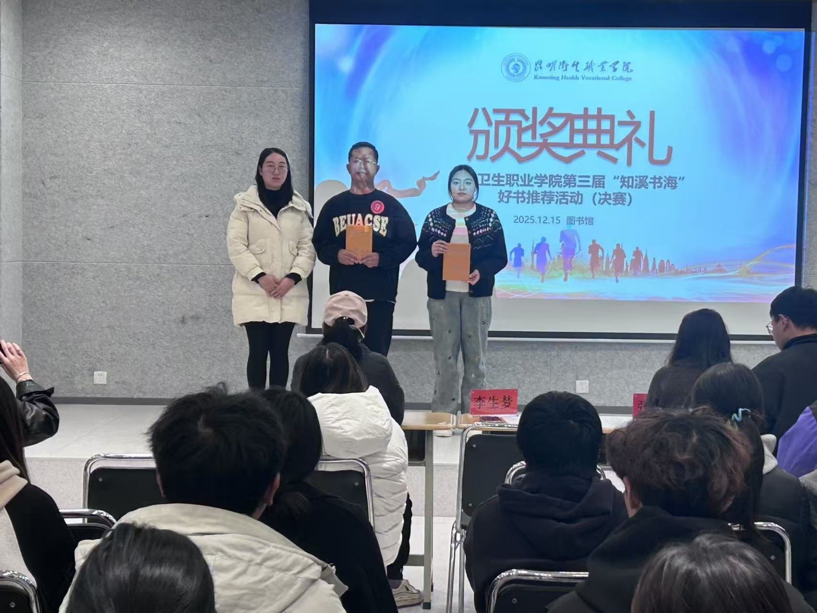 为持续响应国家全民阅读号召,进一步激发全校学生的阅读热情,挖掘经典与新锐优质书籍,培育学生深度阅读的良好习惯,营造“爱读书、读好书、善读书”的校园文化氛围,促进师生间的知识交流与思想碰撞,2025年12月15日晚,由昆明卫生职业学院图书馆主办的第三届“知溪书海”好书推荐活动在新图书馆二楼论坛室顺利举行。