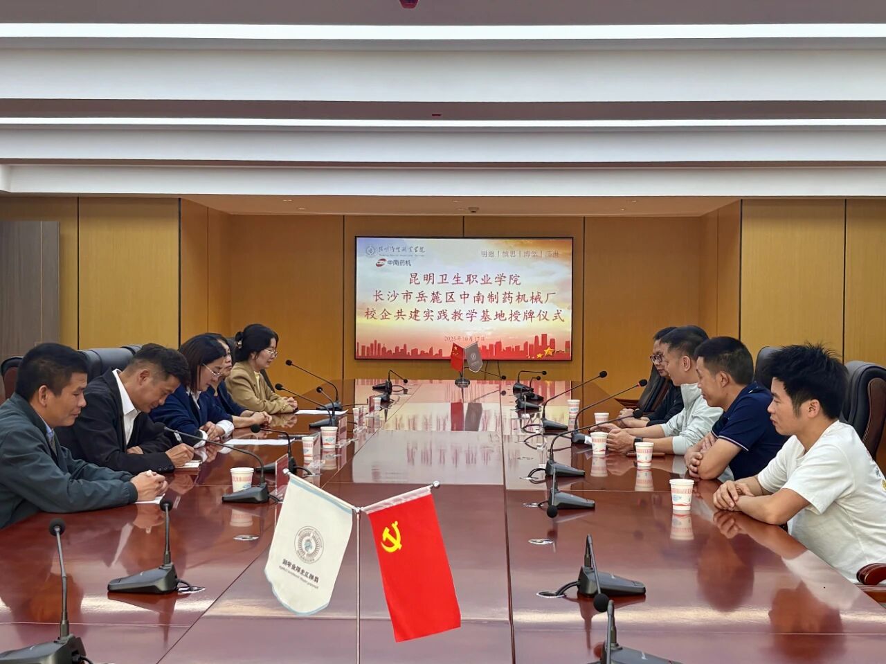 10月17日下午,昆明卫生职业学院中药学院与长沙市岳麓区中南制药机械厂(以下简称“中南药机”)在明德会堂第一会议室举行校企合作实践教学基地共建会议暨揭牌仪式。会议由中药学院直属党支部书记李睿雯主持,学院副院长李玉晶、校企合作处处长陈锦、中药学院院长林青、中药学院副院长唐当柱以及中...