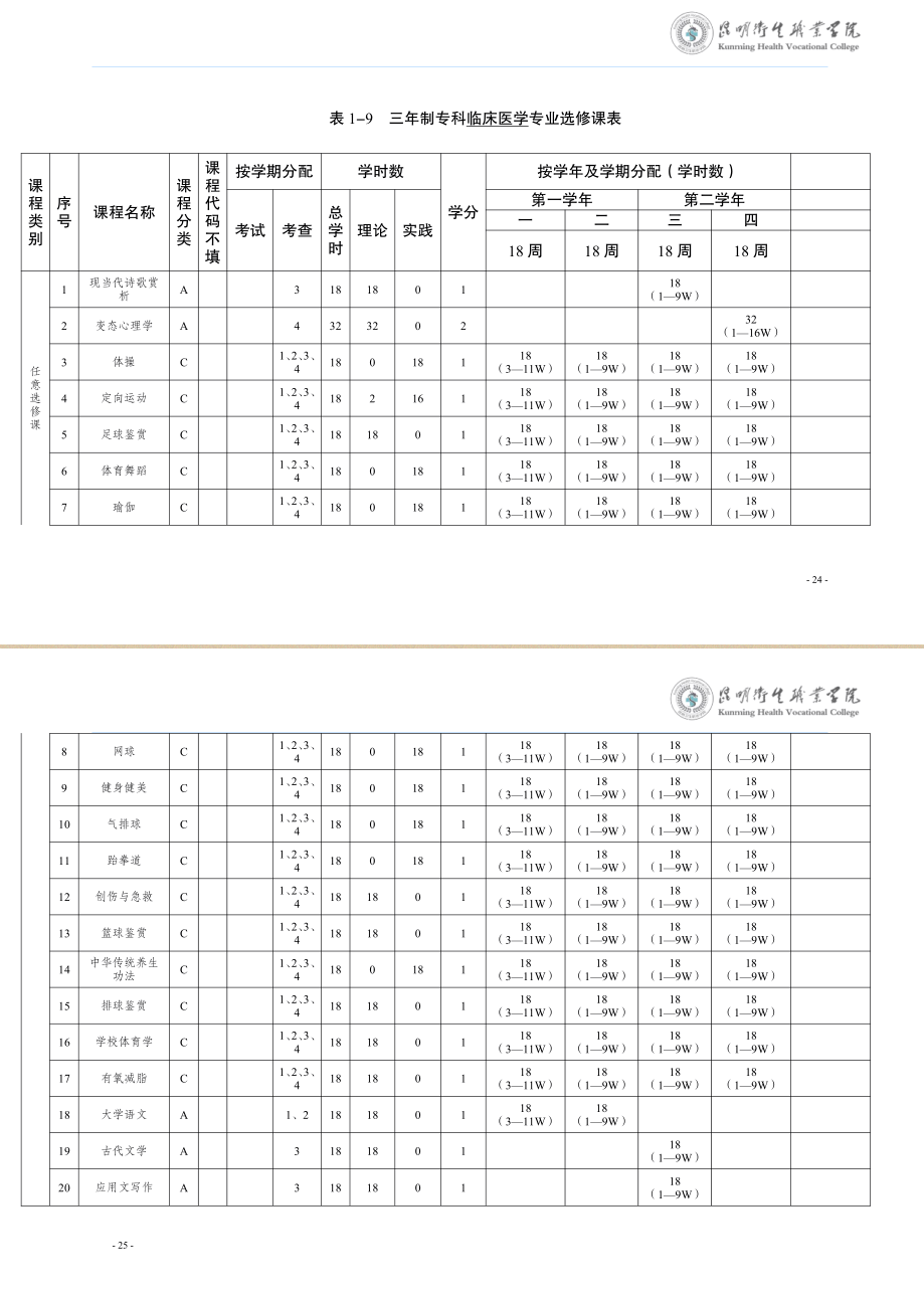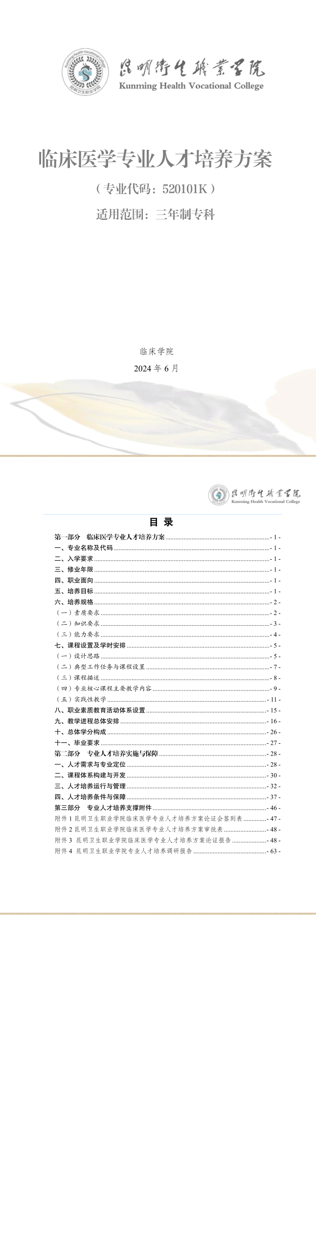 昆明卫生职业学院三年制专科临床医学专业人才培养方案(供24级三年制专科学生使用)