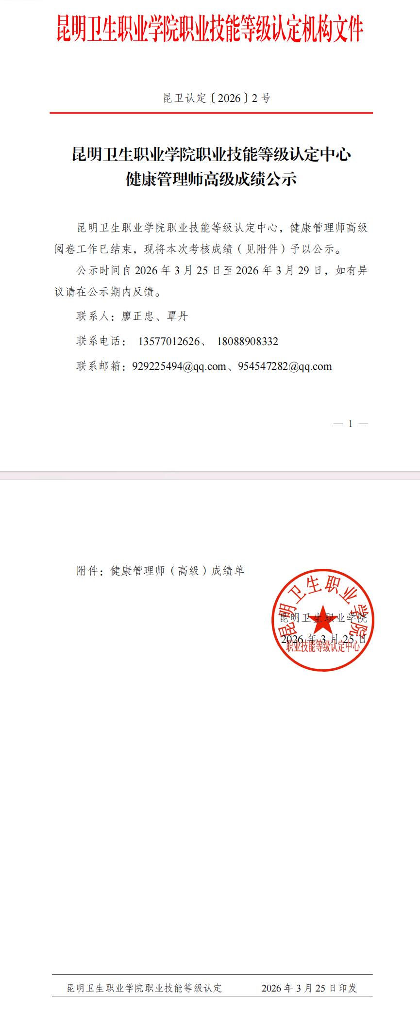 昆卫认定2026-2号文件-健康管理师成绩公示