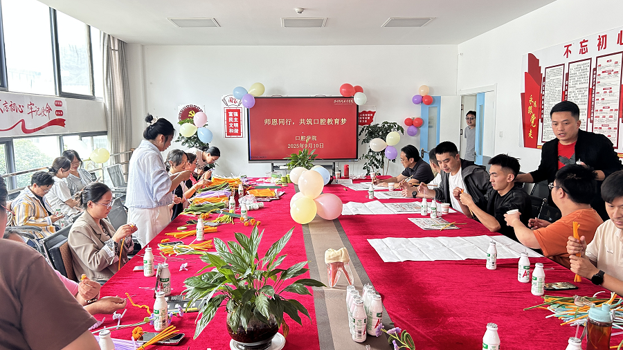 金风送爽,桃李芬芳,2025年9月10日为热烈庆祝第41个教师节,丰富教职工文化生活,9月10日11点,昆明卫生职业学院口腔学院在311会议室举办“巧手扭花颂师恩,挥毫泼墨写初心”主题活动。学院领导及教师齐聚一堂,以缤纷扭扭棒编制“微笑花束”,以遒劲笔墨书写育人初心,在花香与墨香中度过了一个温馨、专业又富有文化味的节日。