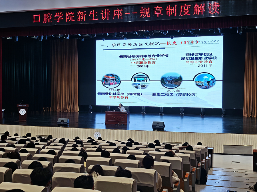 本次新生入学教育讲座内容全面,层层递进,既有思想上的引领,也有行为上的规范,更有学业上的指导,体现了口腔学院对新生们的高度重视与殷切期望。相信2025级全体新生必将以此为契机,快速融入口腔学院这个温暖的大家庭,恪守校纪校规,勤勉学习,锐意进取,在昆明卫生职业学院书写属于自己的青春华章!