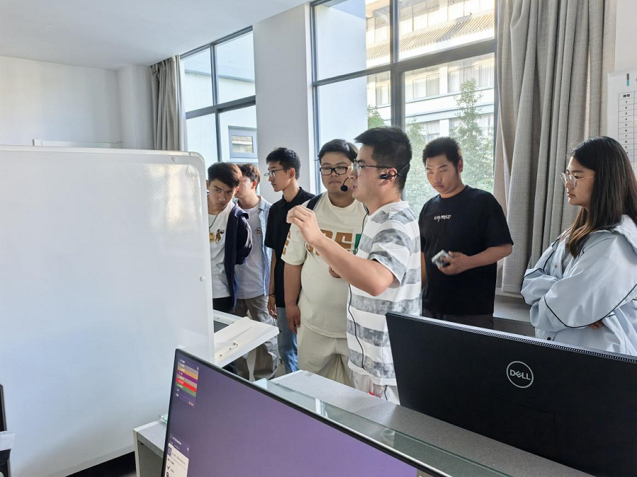 活动现场气氛活跃,新生们兴致勃勃,围绕在设备旁认真观察,并不时就自己关心的问题向席老师提问。席老师耐心细致地一一解答,师生互动频繁,现场充满了浓厚的求知氛围。