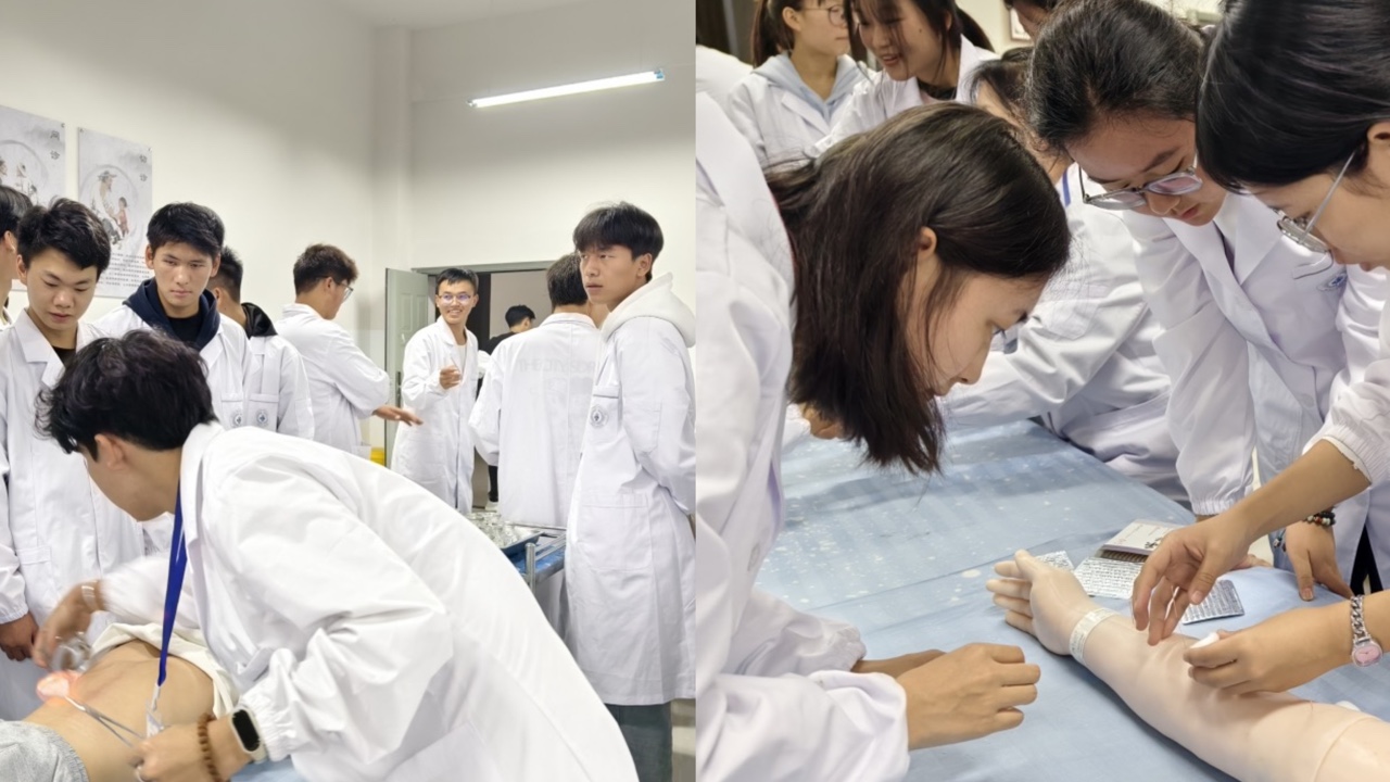 紧接着,在中医学院教学办老师的带领下,24级新生参观了中医学院的各间实训室。实训室内,23级学生助教们全神贯注地进行着技能展示,他们的每一个动作都精准而娴熟,仿佛在书写着中医实训的精彩篇章。24 级新生们围拢在四周,眼神中充满了好奇与期待。通过这次参观,新生们对未来三年需要学习的实训技能有了初步的认识,那一个个熟练的操作、一件件精密的仪器,如同闪耀的星星,照亮了他们即将踏上的中医学习之路。在这个充满着知识与探索的实验室里,新生们感受到了中医实训的魅力与挑战,也为他们的学习生涯注入了新的动力和希望。
