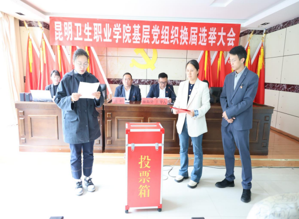 为深入学习贯彻习近平新时代中国特色社会主义思想和党的二十大精神,进一步加强基层党组织标准化、规范化建设,选优配强学院党支部班子,筑牢战斗堡垒根基,根据《中共昆明卫生职业学院委员会关于基层党支部设置调整和各党支部换届选举工作方案》要求,102315:00,中医学院直属党支部在行政楼4楼大会议室召开党员大会,圆满完成支部委员会换届选举。大会应到正式党员21名,实到17名,符合法定人数。学院党委委派徐世美、罗志英两名同志到会指导。会议由上一届支部委员易斯坐同志主持。