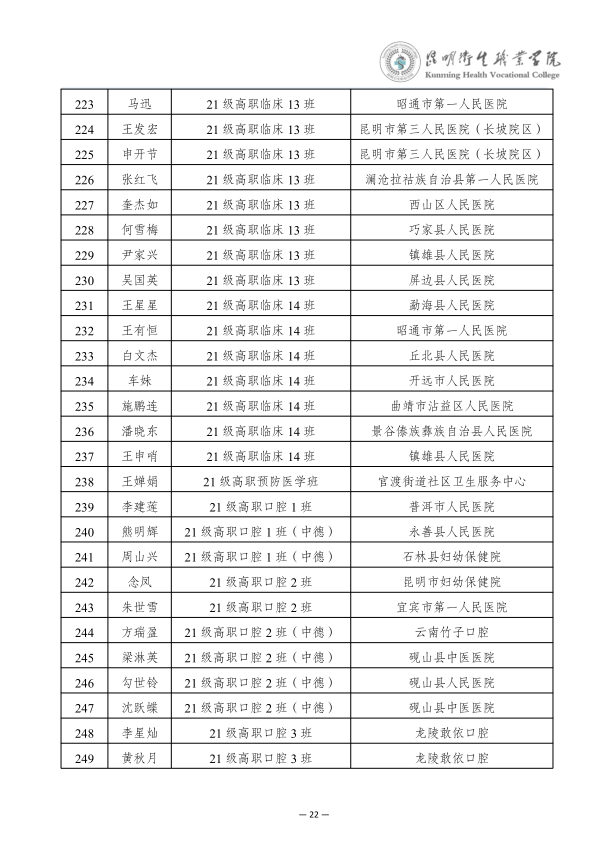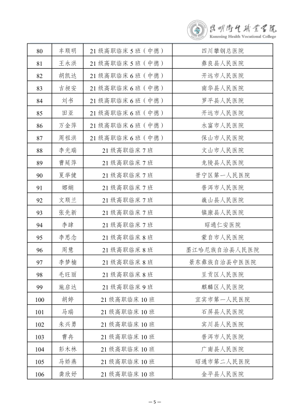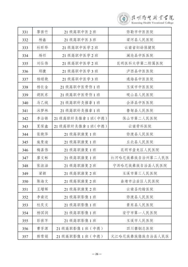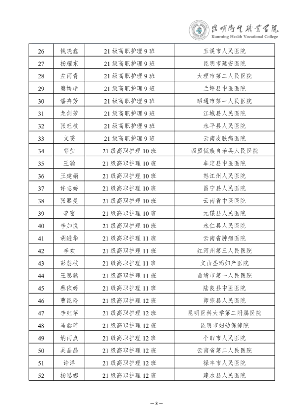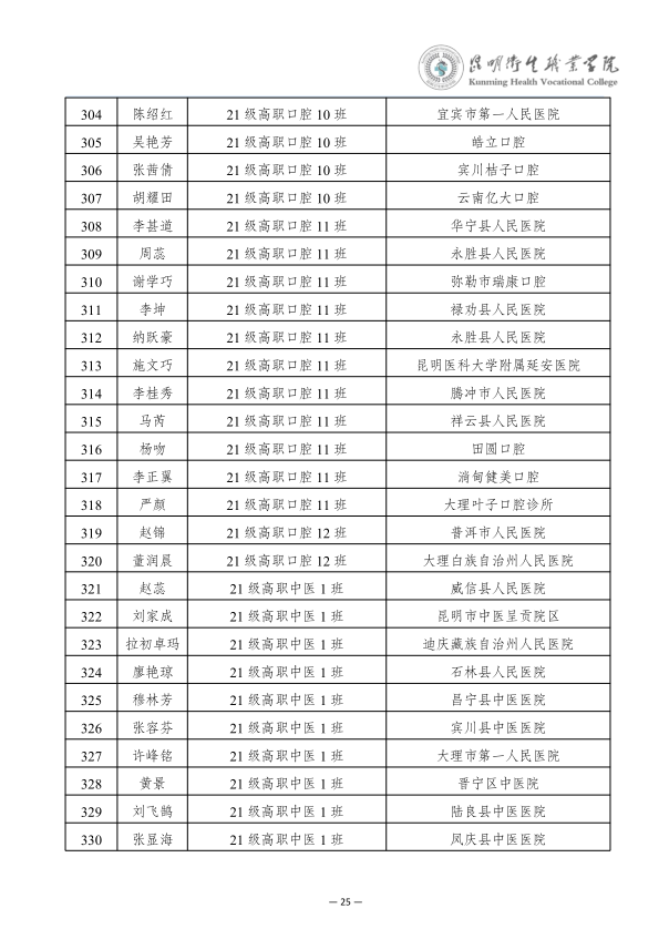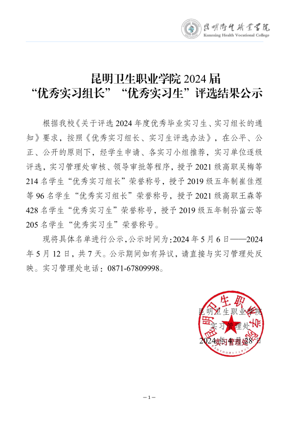 昆明卫生职业学院2024届“优秀实习组长”“优秀实习生”评选结果公示