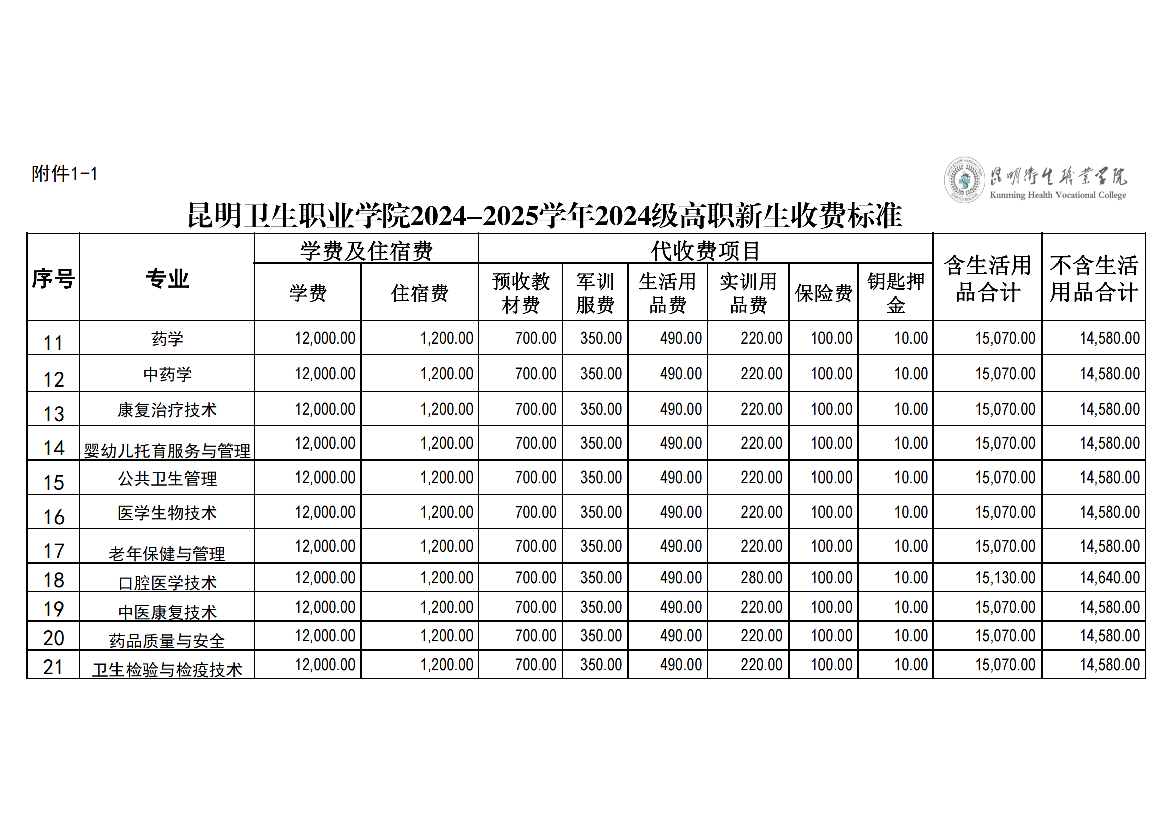昆明卫生职业学院关于缴纳2024—2025学年学费的通知