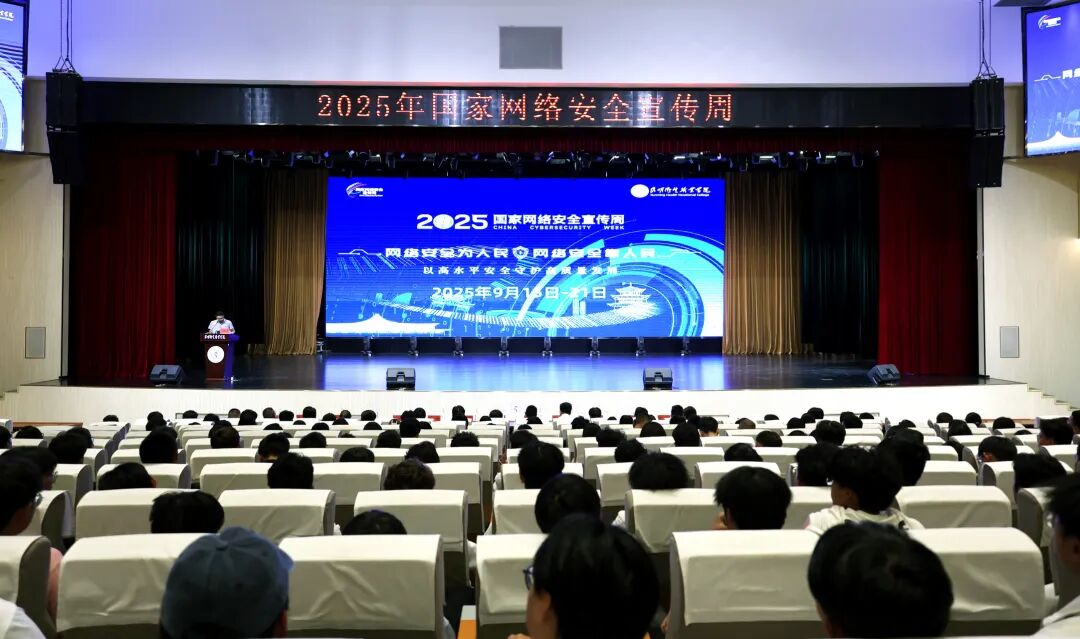 在2025年国家网络安全宣传周开展之际,为深入贯彻习近平总书记关于网络强国的重要思想,切实筑牢校园网络安全屏障,全面提升师生网络安全意识与防护能力,9月16日下午,学院信息中心特别邀请昆明市公安局晋宁分局网安大队、锐捷网络股份有限公司云南分公司相关专家,共同开展网络安全专题宣讲活动。学院党委副书记、院长龙雨霏,副院长陈举国,党委委员、组织部部长、人事处处长张路,学院党政职能部门负责人及相关企业单位领导出席宣讲会,1000余名师生代表现场参与。宣讲会由学院党委委员、党委宣传统战部部长、信息中心主任王斌主持。