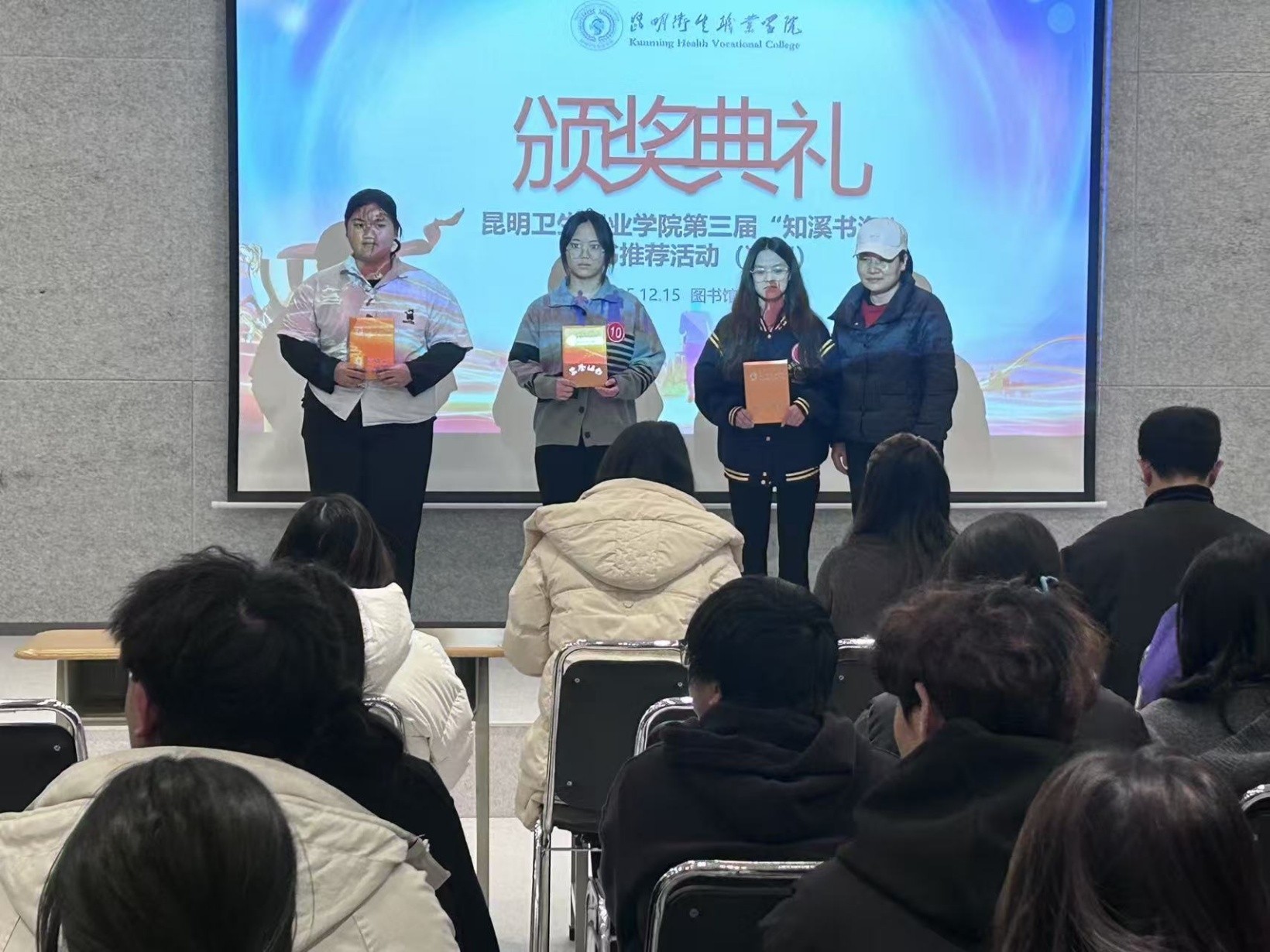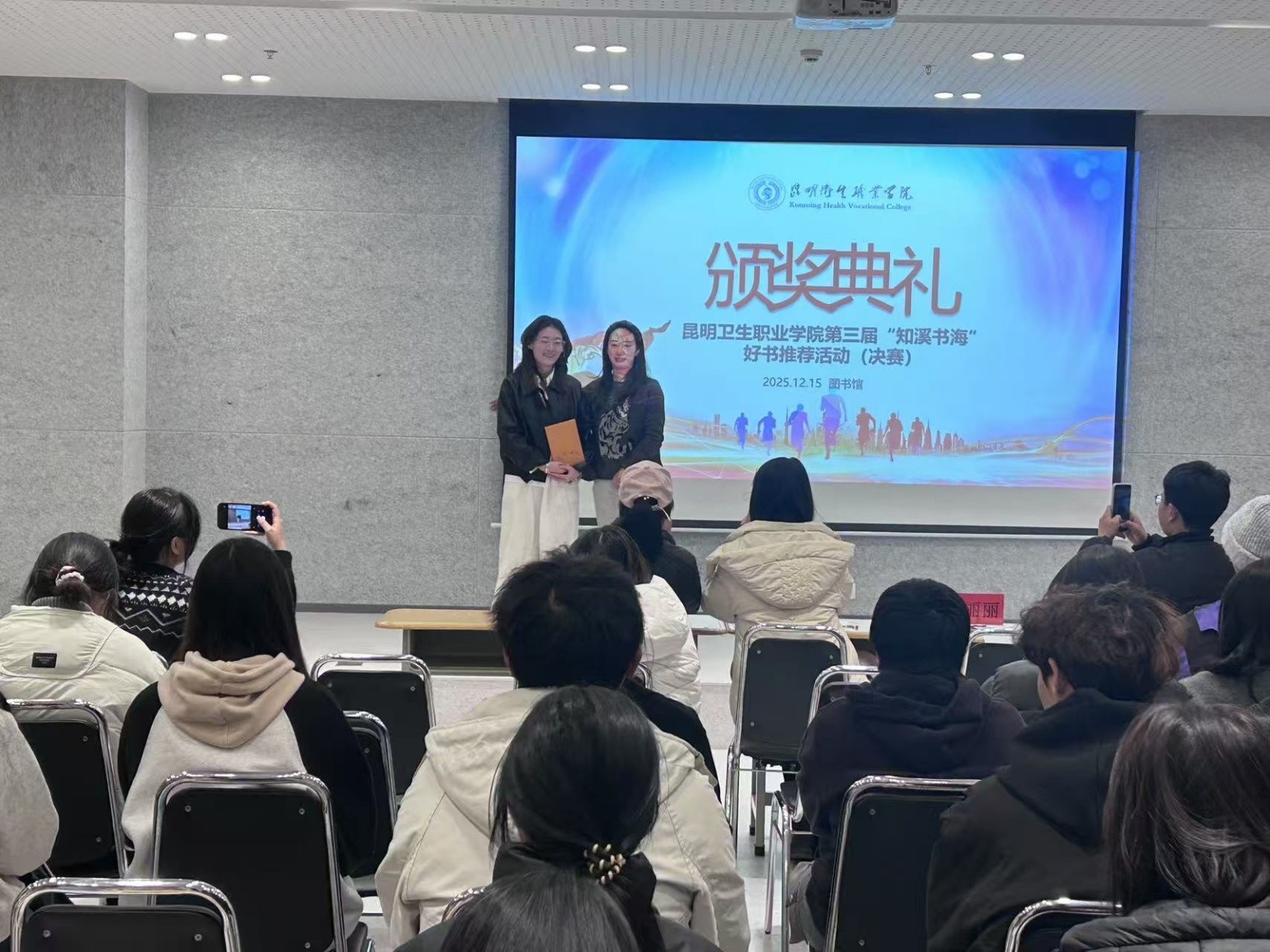 为持续响应国家全民阅读号召,进一步激发全校学生的阅读热情,挖掘经典与新锐优质书籍,培育学生深度阅读的良好习惯,营造“爱读书、读好书、善读书”的校园文化氛围,促进师生间的知识交流与思想碰撞,2025年12月15日晚,由昆明卫生职业学院图书馆主办的第三届“知溪书海”好书推荐活动在新图书馆二楼论坛室顺利举行。