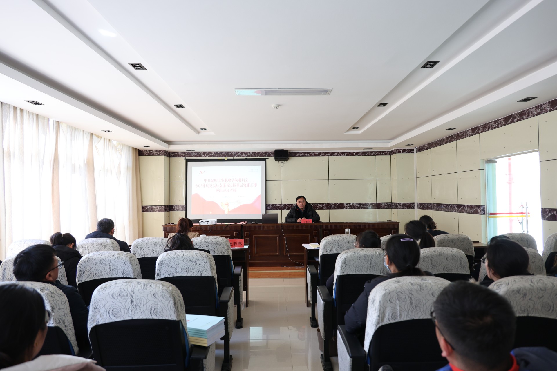 1月9日,学校召开2025年度党(总)支部书记抓基层党建工作述职评议考核会议。会议通过现场述职、逐一点评、民主测评等方式,对各基层党组织书记过去一年的履职情况进行了集中检视。19位党(总)支部书记进行现场述职,其余提交书面报告。