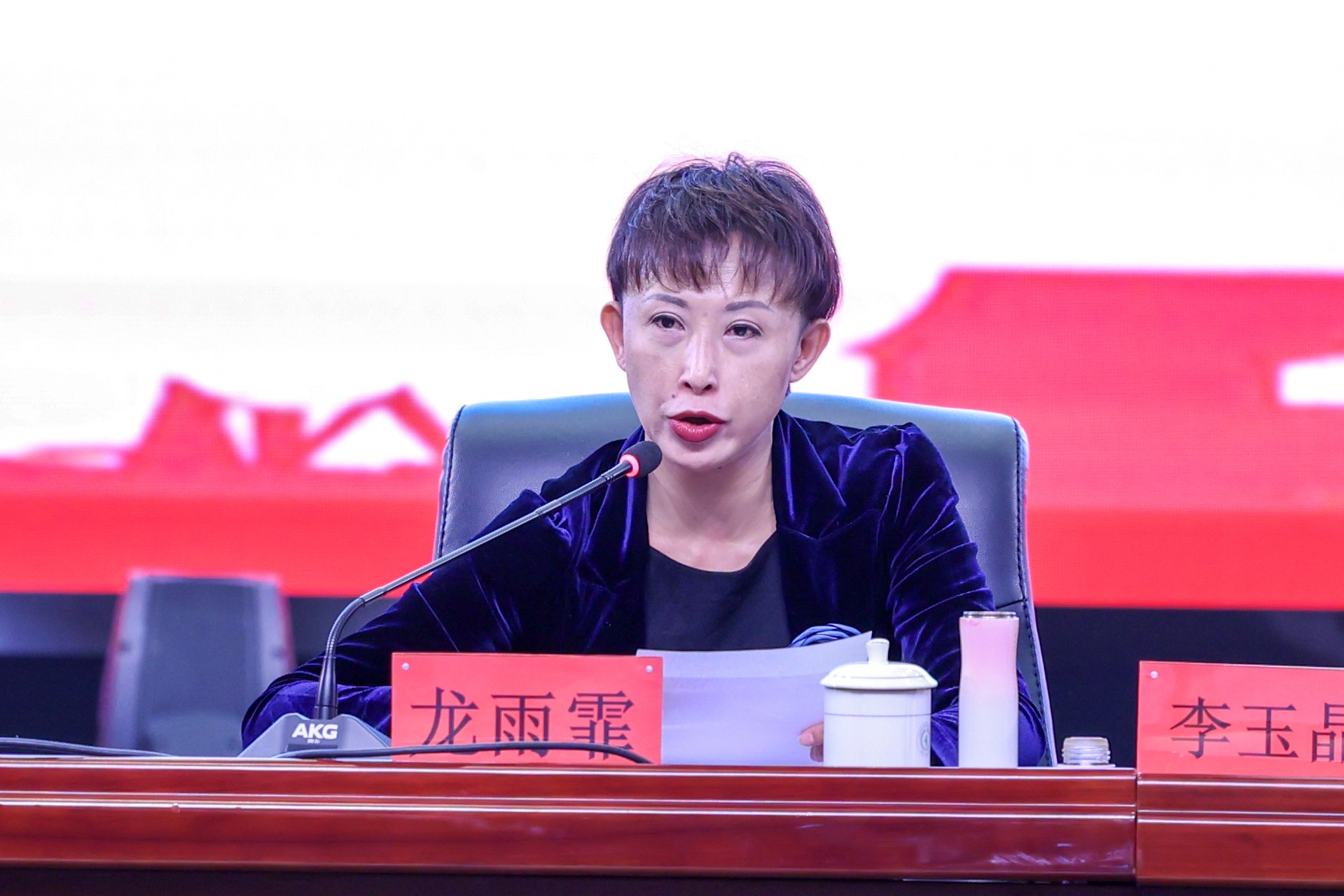 龙雨霏代表学校行政班子致辞,指出2026年是学校创建本科层次职业技术大学的奠基之年。她回顾2025年办学成果,明确新学期将紧扣立德树人根本任务,落实全省教育工作部署,深化产教融合与职教出海,强化师资建设,夯实升本基础。
