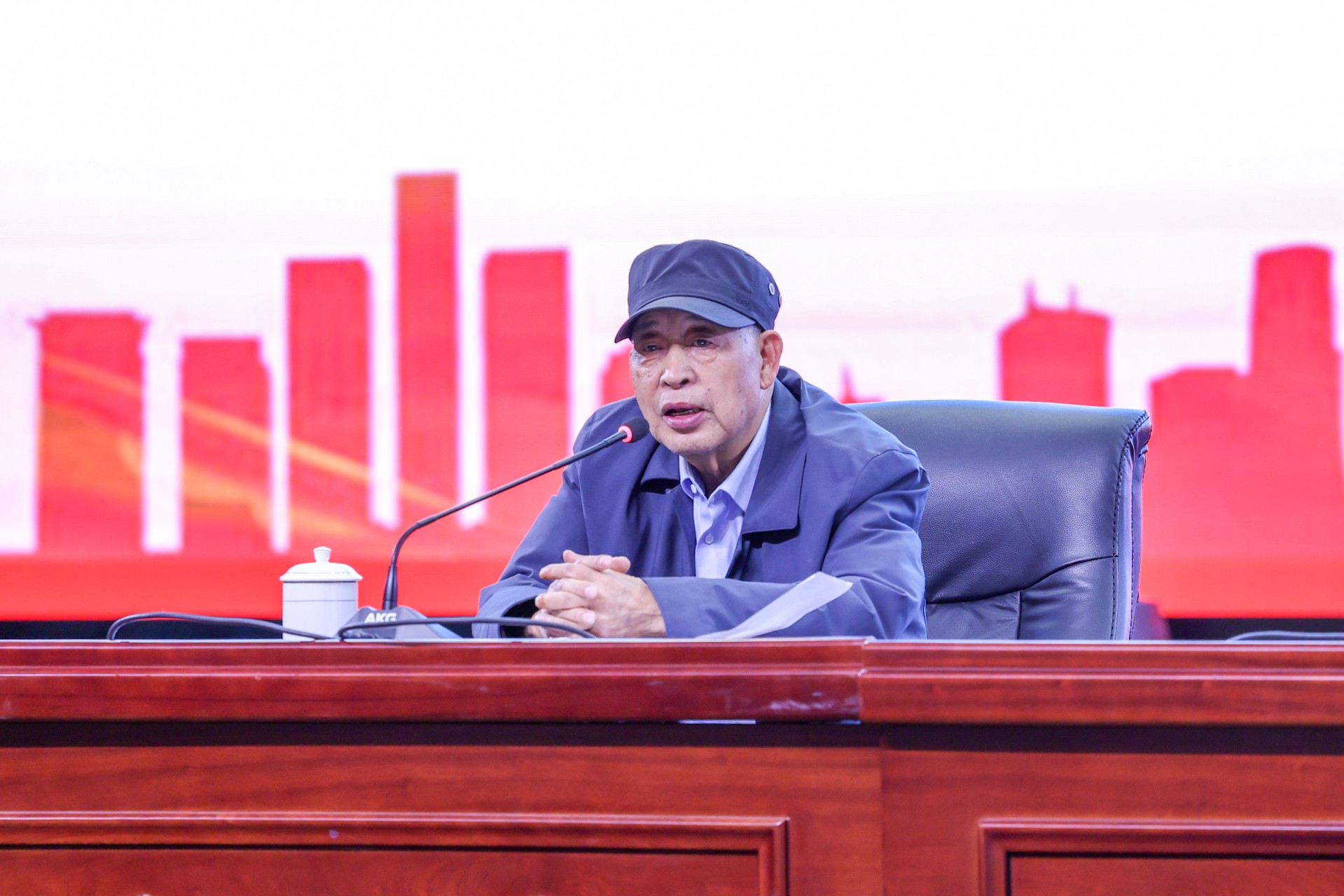 会议在国歌声中开始。