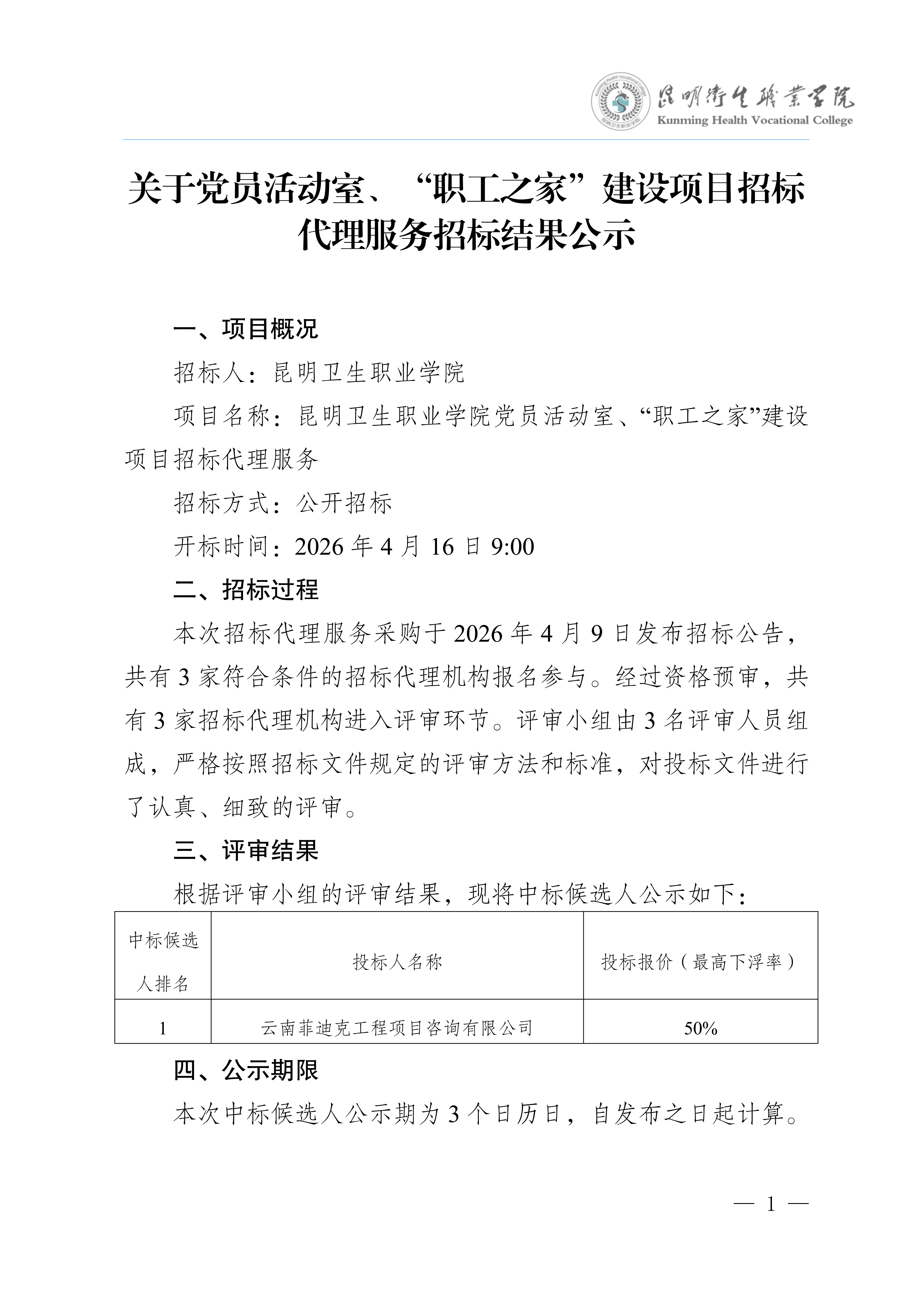 关于党员活动室、“职工之家”建设项目招标代理服务招标结果公示