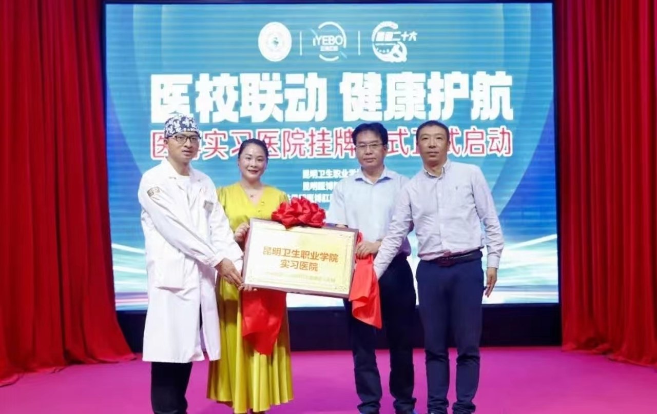 5月8日下午,“医校联动,健康护航”实习医院签约揭牌仪式在昆明医博肝肠医院活动大厅举行。昆明医博肝肠医院总经理曾雅文、副院长张小亮等领导,昆明卫生职业学院副院长张尤松,实习管理处副处长颜慧林,实习管理科科长纳适出席了仪式。