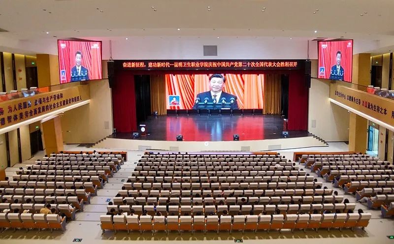10月16日上午10时,中国共产党第二十次全国代表大会在北京人民大会堂开幕,中共中央总书记、国家主席、中央军委主席习近平代表第十九届中央委员会向大会作报告。昆明卫生职业学院师生11000余人采取集中和分散相结合的方式收看了直播实况。收看后,学院各级党组织组织师生开展学习讨论,结合工作和学习实际,畅谈体会感想。