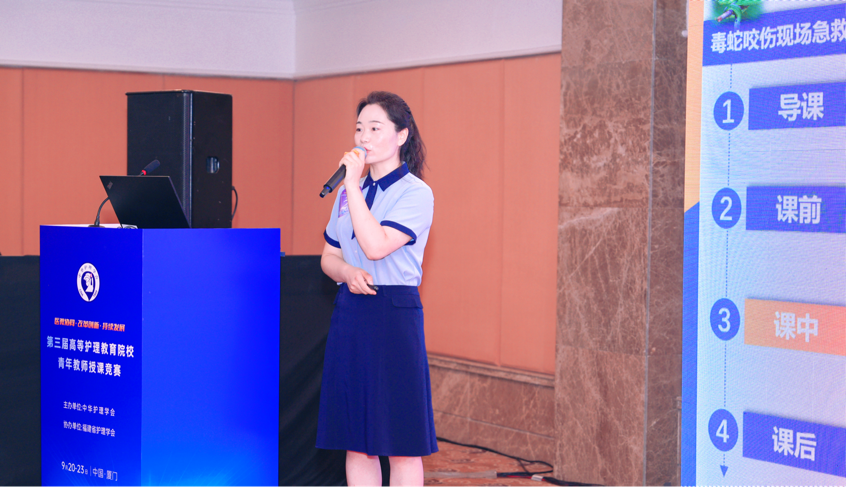 为深入贯彻落实党的二十大战略部署,进一步推动医教协同背景下高等护理教育教学改革,提高青年教师教学能力与水平,中华护理学会高等护理教育专业委员会2024年9月20-23日在厦门举办“第三届高等护理教育院校青年教师授课竞赛”。我校护理学院教师崔水峰以新颖的教学方法讲授了《毒蛇咬伤现场急救》的教学内容,荣获2024年第三届高等护理教育院校青年教师授课竞赛(高职组)中一等奖。