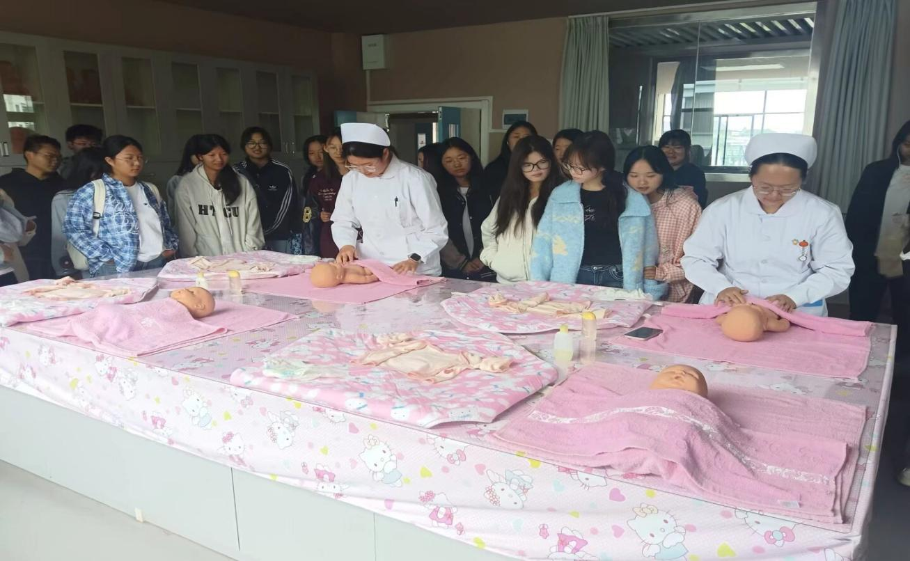 三楼站点式布局实验室清晰呈现技能模块化训练逻辑;四楼妇产科实验室的模拟分娩设备、儿科实验室的婴幼儿抚触演示,让助产专业新生明确职业方向。五楼手术室、ICU 的生命支持设备讲解,更激发了新生钻研热情。
