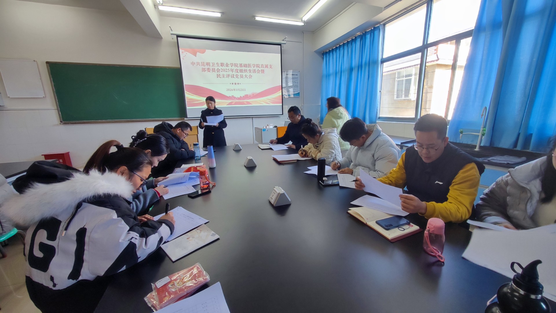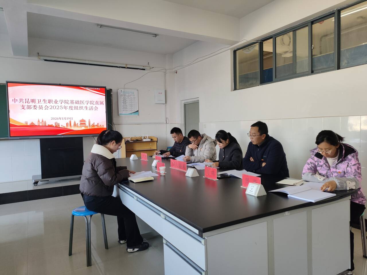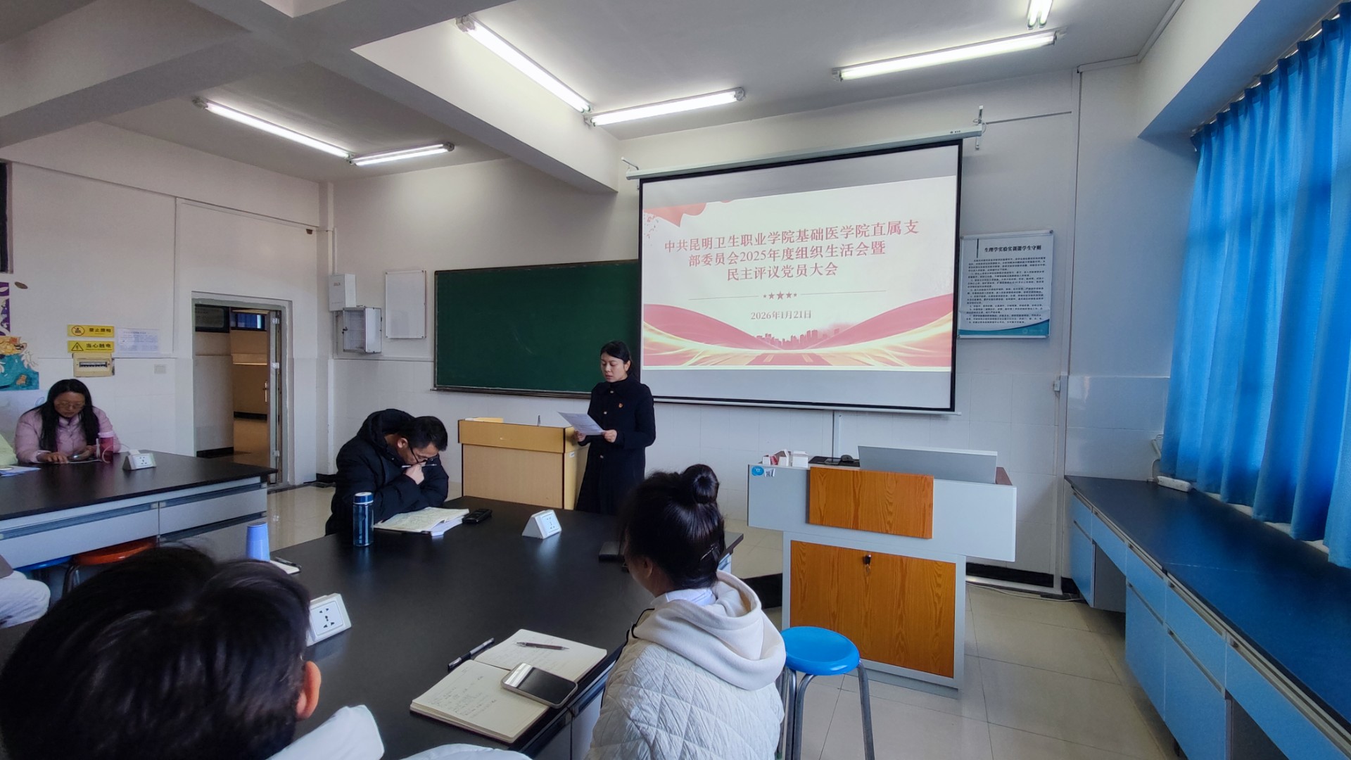 根据学校党委《昆卫党组〔2025〕22号 中共昆明卫生职业学院委员会组织部关于召开2025年度党(总)支部组织生活会和开展民主评议党员的通知》相关工作要求,基础医学院直属党支部于2026年1月21日上午在基础医学院309组织召开2025年度组织生活会暨民主评议党员大会。会议由党支部书记彭莉同志主持,党支部全体党员及预备党员参加会议。