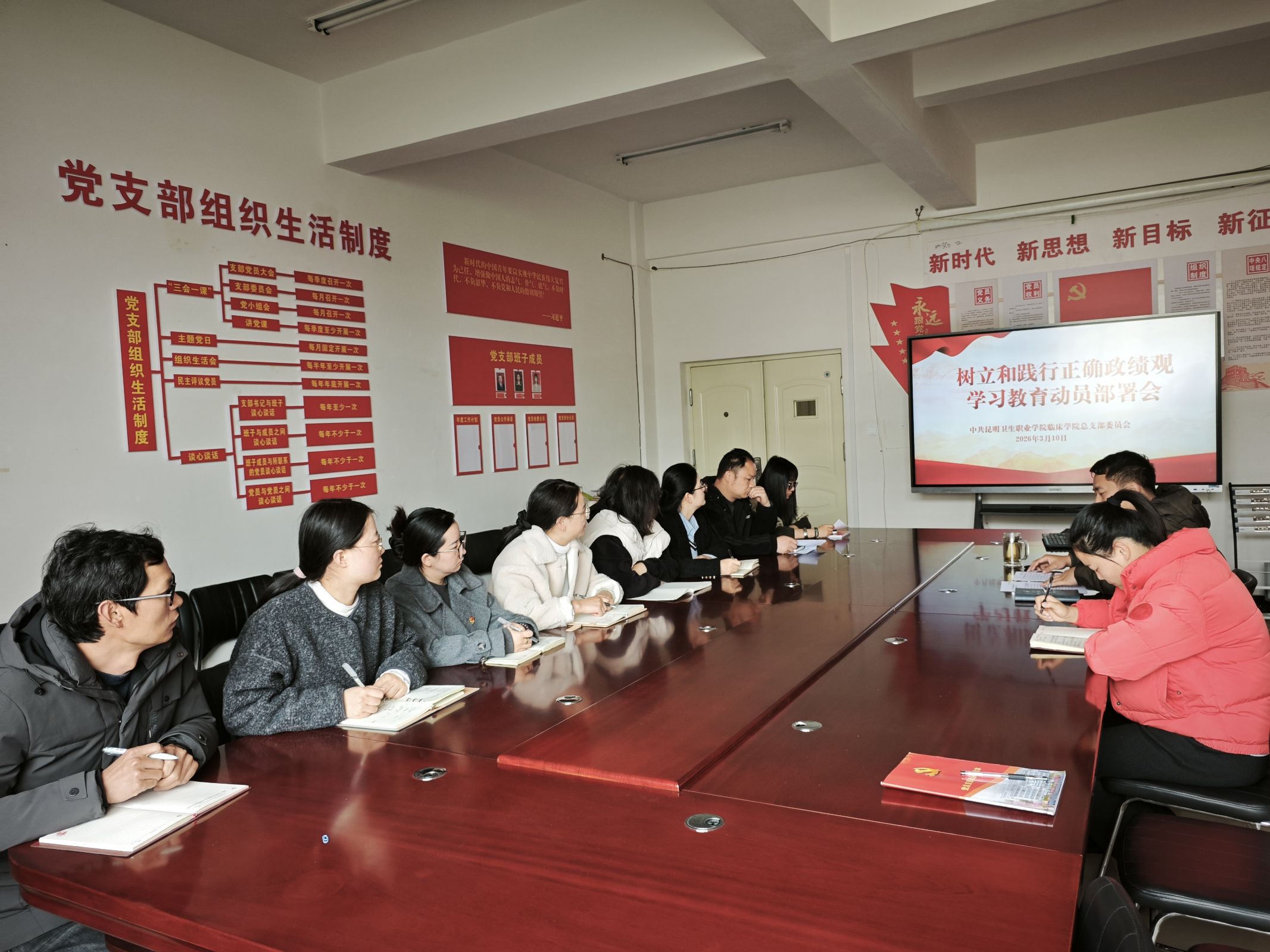 2026310日,临床学院党总支在临床实训楼405党员活动室召开树立和践行正确政绩观学习教育动员部署会,深入学习贯彻习近平总书记关于树立和践行正确政绩观的重要讲话和重要指示精神,紧扣立德树人根本任务,结合学院教育教学、人才培养工作实际,对树立和践行正确政绩观学习教育进行动员部署。临床学院党总支书记杨登光主持会议,第一党支部书记余建坤、第二党支部书记杨林杰、第三党支部书记张雪雪及各支部委员参加会议。