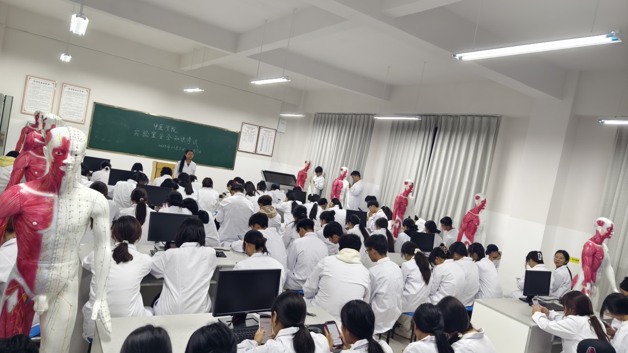 为进一步加强实验室安全管理,提高同学们的自我保护能力和实验安全意识,确保学生在实验室学习中的安全。根据昆明卫生职业学院关于印发《昆明卫生职业学院实验室安全管理实施细则》的通知昆卫院〔2024〕46号、《昆明卫生职业学院实验室安全分级分类管理办法(试行)》的通知昆卫院〔2024〕111号及《教务处关于开展新生实验室安全教育的通知》昆卫教〔2024〕174 号等文件精神,中医学院于10月8日到10月17日期间组织2024级全体新生(共计:1396人次)开展了为期两个周的实验室安全教育系列活动。