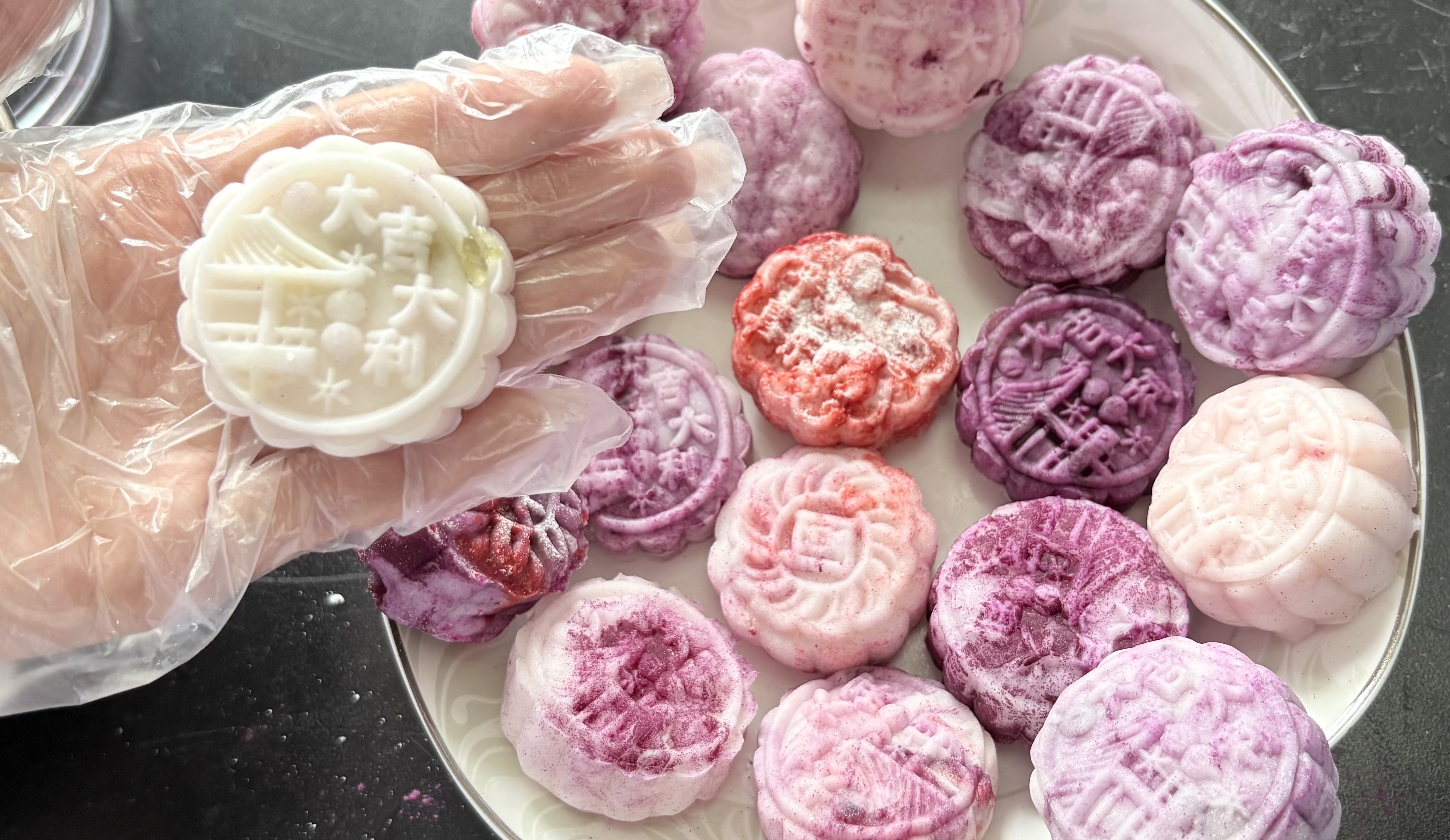 结合中秋传统文化与现代饮食喜好,本次实训还引入了冰皮月饼制作环节。学生在教师指导下,将山药、红豆、莲子等食药两用食材融入馅料,外皮选用糯米粉、粘米粉等天然原料,制作出色泽雅致、口感软糯的中药特色冰皮月饼。不仅锻炼了学生的创意与实操能力,也将中药知识灵活应用到日常生活中。